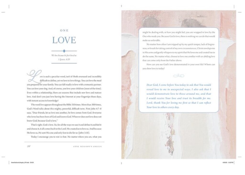 Once again, Anne Neilson’s ethereal angels encourage and comfort as they draw us nearer to God, Who is always by our side. Let Scripture, prayer, and the beauty of Anne Neilson’s Angels nurture your soul.