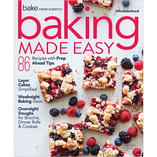 With this special collection of the most make-ahead-friendly recipes from Bake from Scratch, we prove how advantageous time management and prep work can be. The best part? For every recipe in this issue—from brownies and brioche to Bundt cakes and cookies galore—we break down the process for you with exclusive, customized timetables for the days leading up to when you’re ready to serve. We organize and simplify the process for you. With a little preparation, you can avoid rushing and last-minute letdowns and actually enjoy the craft. From freezing streusel to prepping syrup soaks for cakes, our test kitchen-approved methods make even the most time-consuming recipes attainable. Prep work is especially useful during summertime, often filled with travel and spontaneous get-togethers. The next time friends stop by unexpectedly, pull out a ready-to-serve pie (try the Black Bottom Peanut Butter Icebox Pie on page 22) from the refrigerator or freezer. The zesty berry bars on the cover and the Snickerdoodle Sablés are two ideal summer treats, perfect for both casual cookouts and fanciful fêtes. Don’t let your busy schedule get in the way of baking. Prep now, bake later.