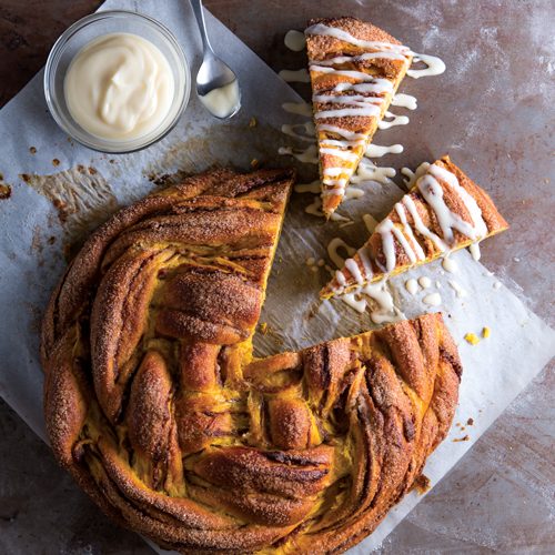 Fall is knocking on our doors—it’s time to bake up comfort from scratch. We’ve divided this special issue into the autumn baking highlights, from peak seasonal produce like pumpkin, sweet potatoes, and apples to favorite fall flavors like caramel, chocolate, and warm spices. Whether you’re looking for a rustic ginger and pear skillet cake or a hearth-style sweet potato loaf, this collection offers the top sweet and savory recipes to complement your harvest dinner. If you’re looking for a breakfast stunner, find streusel-topped one-layer cakes and aromatic, nutty sweet buns. Crunched for time? Try our one-bowl lace cookies or a simple herbaceous quick bread. And for those crust fiends, select one of our flaky pies and tarts packed to the brim with nuts, apples, pears, or silky-smooth custard. The options are endless! What will you bake first?