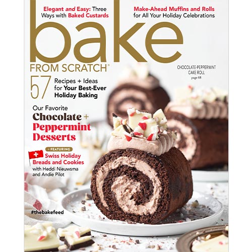 This issue of Bake from Scratch has everything you need to make the season merry and bright. We take you to beautiful snow-covered Switzerland and the kitchens of Heidi Nieuwsma and Andie Pilot to experience their traditional Swiss holiday breads and cookies. You’ll also find recipes perfect for making ahead, including overnight sweet and savory muffins and rolls; easy-meets-elegant baked custards; chocolate-peppermint cakes, cookies, and brownies; plus Lady Baltimore Cake that’s fit for royalty. Get ready to create a little holiday magic with Bake from Scratch!