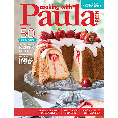 Springtime is here, and Paula is ready to get into her garden to celebrate all the lovely things about the fresh new season. This issue is filled with ideas for Easter celebrations, ways to use spring’s best produce, and lots of complete meals to enjoy with your family. From pork chops and mac and cheese to slab pies and orange rolls, these pages are filled with recipes everyone will love.