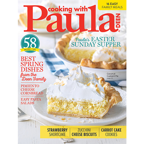 Springtime is here, and Paula’s sharing plenty of delicious dishes to celebrate the season. This issue is filled with complete menus for a fabulous Easter supper and a hearty pork chop meal, new ways to enjoy pimiento cheese, pasta salads galore, tasty coconut creations, and more recipes you’re sure to love.