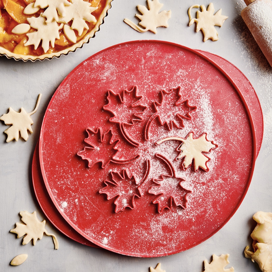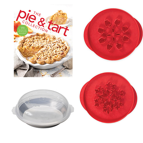 Includes: The Pie & Tart Collection, Leaves and Apples Pie Cutter, and Naturals High Dome Covered Pie Pan.