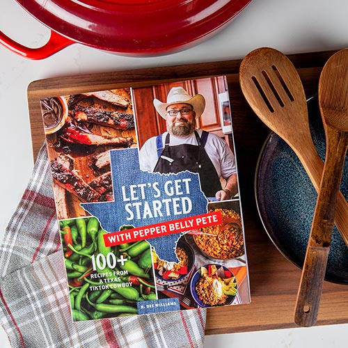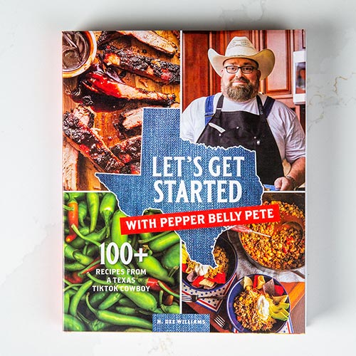 Viral sensation, Pepper Belly Pete, is known for his signature look: a cowboy hat, denim overalls, and a hot sauce arm holster. But, he’s amassed a dedicated following because of his delicious Southern recipes and collection of sauces, salsas, and glazes. In his first published cookbook, Let’s Get Started with Pepper Belly Pete: 100+ Recipes from a Texas TikTok Cowboy, author N. Dee Williams (the man behind Pepper Belly Pete) shares his favorite weeknight meals, gameday appetizers, and crowd-pleasing desserts. Combining recipes passed down from N. Dee’s mother with creative concoctions of his own making, this cookbook has something for everyone.