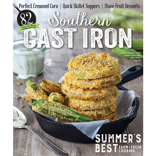 Late summer in the South brings a glorious bounty of fresh produce like plump tomatoes, juicy peaches, sweet corn, and crisp peppers. This gorgeous new issue of Southern Cast Iron takes those warm-weather staples to new levels with the help of skillets and Dutch ovens aplenty. Find new ways to use your farm stand haul with our veggie-centric recipes or perfect your burger game with our best skillet burgers—and all the cheesy, tangy toppings you could imagine. Plus, indulge in a jubilee of stone fruit desserts and company-worthy sweet rolls, and get a look at cast iron newcomer Butter Pat Industries. Whether you peruse it on the front porch or add it to your collection of cherished cooking companions, this delicious issue is sure to inspire you all season long.