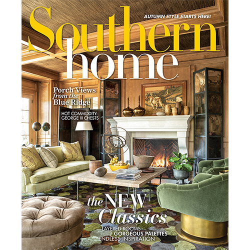 Before the first leaves of autumn even begin to fall, our excitement and nostalgia for the changing season has already begun. The sundrenched days of summer fade away and we find ourselves looking indoors for a cozy, comfortable atmosphere. Warmer tones and colors come into play along with soft fabrics and textures while we look to our own backyards for seasonal accents. We also move our sights away from beach vacations and trips to the lake and begin to think of gathering around the table with family and friends—believe it or not, the holidays are just around the corner. The Southern Home team hopes this new issue will inspire you to look around your spaces and see what autumnal additions you can make to your interiors. As you peruse these pages, you’ll not only find beautiful design and stunning architecture, but also the warmth and personality the designers work to give each home. Designer Barry Dixon dresses a lush Virginia estate to fit the needs and aesthetic wants of his client while Marie Flanigan creates a lakeside retreat for a Texas couple. Architect Joel Kelly and interior designer Whitney Ray bring a rustic dream to life in the North Carolina mountains, and Bethany O’Neil renovates a sprawling Figure Eight Island abode. We wish you the happiest of autumns and hope it brings you joy, comfort, and beauty.