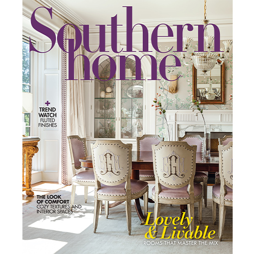 We hope that you’ll journey through each page of this autumnal issue and find elements of design that you’d like to incorporate into your own home. Architect Adam Gerndt brings Texas flair to Alabama for a couple seeking a landing spot for their family while designer Benjamin Johnston layers art with patterns and rich textures for a stunning Houston home. Designer Jolee Fennebresque creates a stylish yet traditional abode overlooking a lush golf course and architect Roger Birle and designer Melanie Elston build a stately Virginia home to maximize views. Our Designer Q&A features Atlanta-based Jackye Lanham and her skillful talent for layering spaces with detailed yet peaceful spaces while our Destinations column shows off the luxurious Primland Resort in the Blueridge Mountains. The Southern Home team wishes you a happy and relaxing fall season!