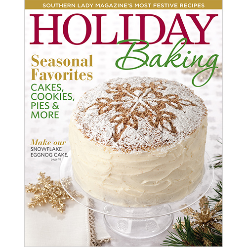 From cakes and cookies to pies and tarts, we’re bringing you the best of Southern Lady’s holiday treats in this special issue! Whether teaching little hands the art of rolling dough and cutting cookies or assembling a standout layer cake as the grand finale for a Christmas meal, holiday baking is all about sharing the joy of the season through homemade treats. We’ve packed this issue with such favorites from the pages of Southern Lady magazine, including our cover-worthy Snowflake Eggnog Cake and a lineup of baked goods ideal for making and taking. So preheat the oven, and enjoy the made-from-scratch possibilities. From our kitchen to yours, Merry Christmas and happy baking!