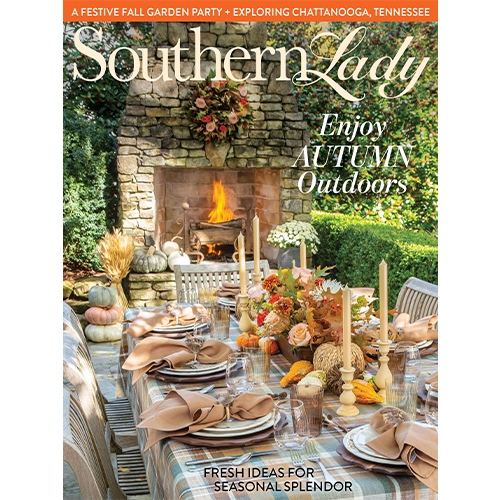 With such splendor unfurling all around, this issue is a love letter to October’s grand arrival. Take advantage of the spectacular natural milieu with garden parties and patio gatherings that highlight the best of fall, from harvest flavors to tablescapes enriched by earthy hues and bold florals. Charming gourds of every variety are given due prominence, starring in decorative vignettes and the inviting outdoor spaces of our annual feature “Porches & Pumpkins.” Revel in autumn’s color show at the Buffalo National River in Arkansas, as well as Chattanooga, Tennessee, where chic hotels and lively downtown businesses lend the mountain metro fresh esprit. We tour a renovated farmhouse swathed in blue and white, share creative ways to use vintage gravy boats, and present recipes inspired by persimmons at their peak. From your own cozy corner of the South, we hope you relish the golden possibilities this month brings.