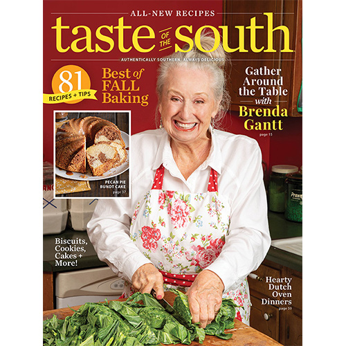 Fall is in full swing, and this brand-new issue of Taste of the South has all the eats and treats you need to carry you through. Inside, you’ll discover hearty suppers like the Creamy Chicken and Rice Casserole and cozy Turkey and Andouille Gumbo. We even had a little fun with Southern spirits to create boozy delicacies like our soul-warming Bourbon Collards and Spicy Honey-Rum Slow Cooker Ribs. There are several sweet surprises worth a taste as well, like our decadent Pecan Pie Bundt Cake and crumbly Pumpkin-Chocolate Chip Streusel Loaf. Tag along on our road trip through Appalachia from Georgia to North Carolina and check out some of our must-see stops, and step into the world of Southern barbecue with us as we explore the rich contribution of Black pitmasters. And there’s a whole lot more where that came from, so be sure to snag your copy of Taste of the South today.