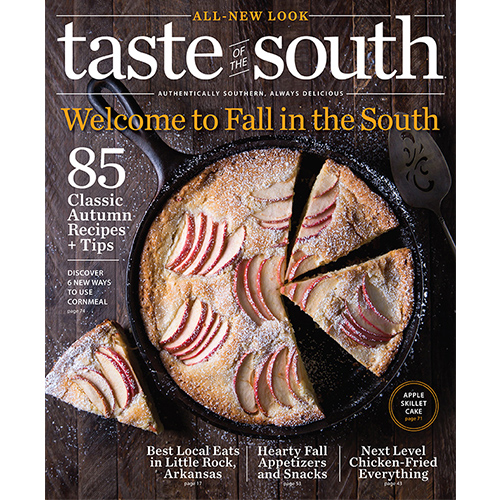 In this brand-new issue of Taste of the South, we’re bringing you 85 incredible recipes to welcome early fall. From our very best apple desserts and pecan recipes to new, delicious ways with collard greens and craveable starters perfect for any autumnal event, this issue will be your go-to guide for everything from party planning to soul-warming suppers. Check out our “Chicken Fried Everything” feature for the crispy, crunchy recipes of your dreams, or plan your next road trip to Little Rock, Arkansas, with our food lover’s travel guide. Whatever this season holds, you’ll want to bring this issue of Taste of the South along for the ride.