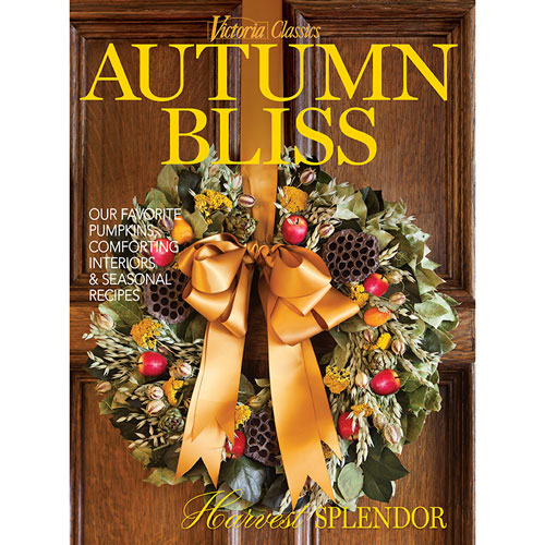 The Autumn Bliss issue from Victoria Classics showcases the season’s prismatic kaleidoscope of beauty, with welcoming vignettes, exquisite adornments, and favorite dishes offering comfort, inspiration, and delight. Harvest tables celebrate fall bounty, brimful wreaths add grace notes wherever they are placed, and a variety of pumpkins and gourds lends quintessential charm to both interiors and outdoor spaces. Plus: Prepare for entertaining with our treasury of hearty recipes!