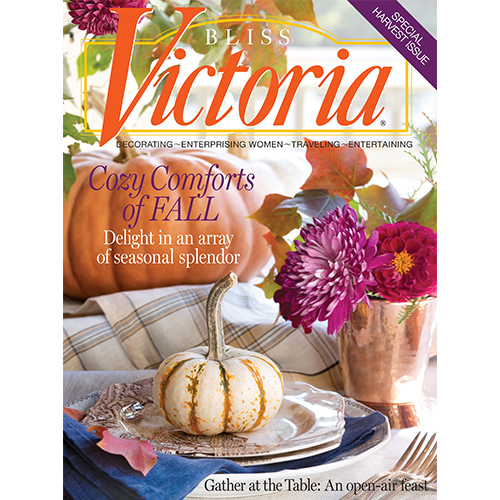 Savor the cozy comforts of autumn with our Special Harvest Issue. You’ll find inspiration for adorning your home with pumpkins, antique toleware, and copper-hued accents. We also take you to our favorite locales for viewing spectacular fall foliage—Ontario, Canada’s Niagara-on-the-Lake and New Hampshire’s Canterbury Shaker Village. Plus: Sample seasonal jewels of the vine with recipes featuring glorious grapes.