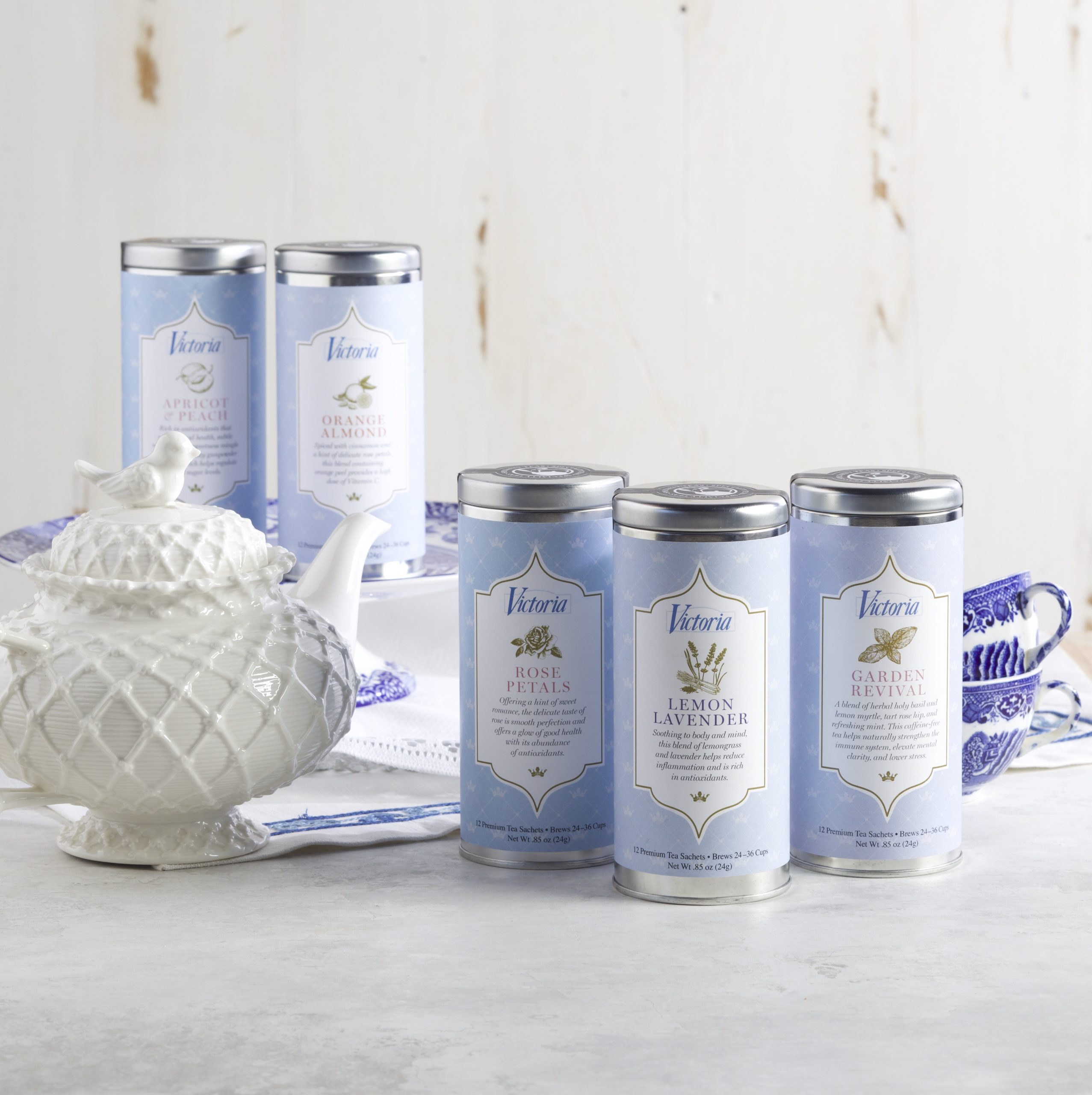 Presented in charmingly adorned reusable tin canisters, our specialty teas fill the cup with fragrance and flavor. Premium sachets allow room for tea leaves to expand during steeping, and each sachet brews two to three cups or a small teapot.